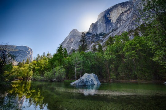 Mirror Lake reflects as sun rises over Half Dome ~d nelson